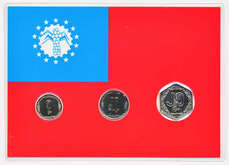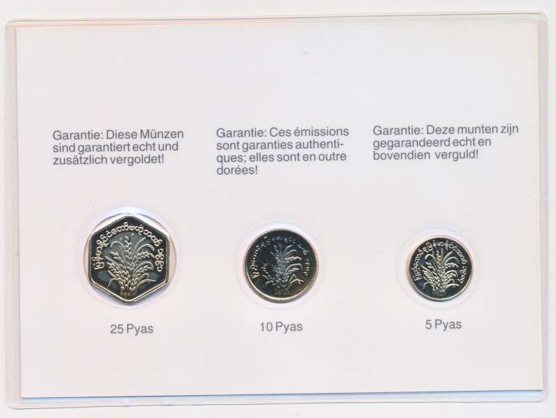 Myanmar muntset 5-10-25 Pyas (Verguld)