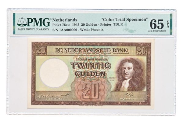 Nederland 20 Gulden 1945 Stadshouder Willem III (kleuren) Specimen PMG65 EPQ