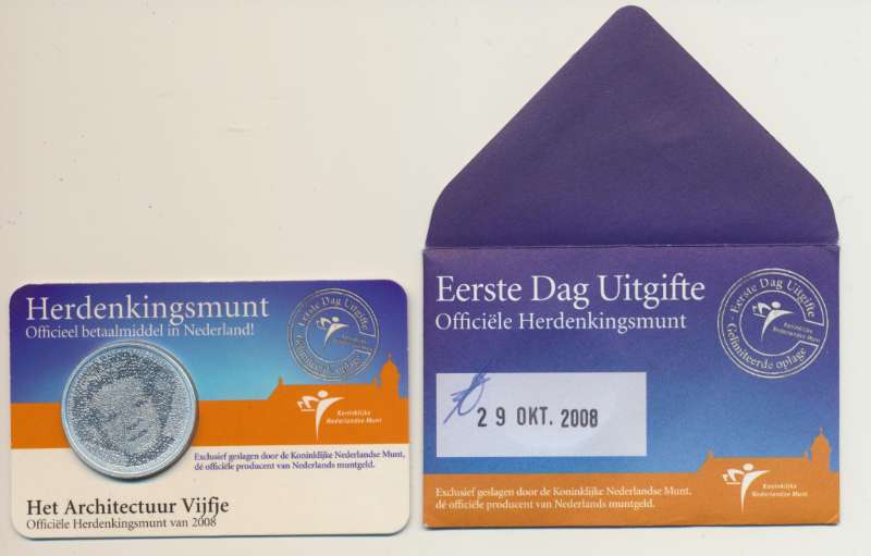 Nederland 5 euro 2008 Architectuur 1e dag uitgifte