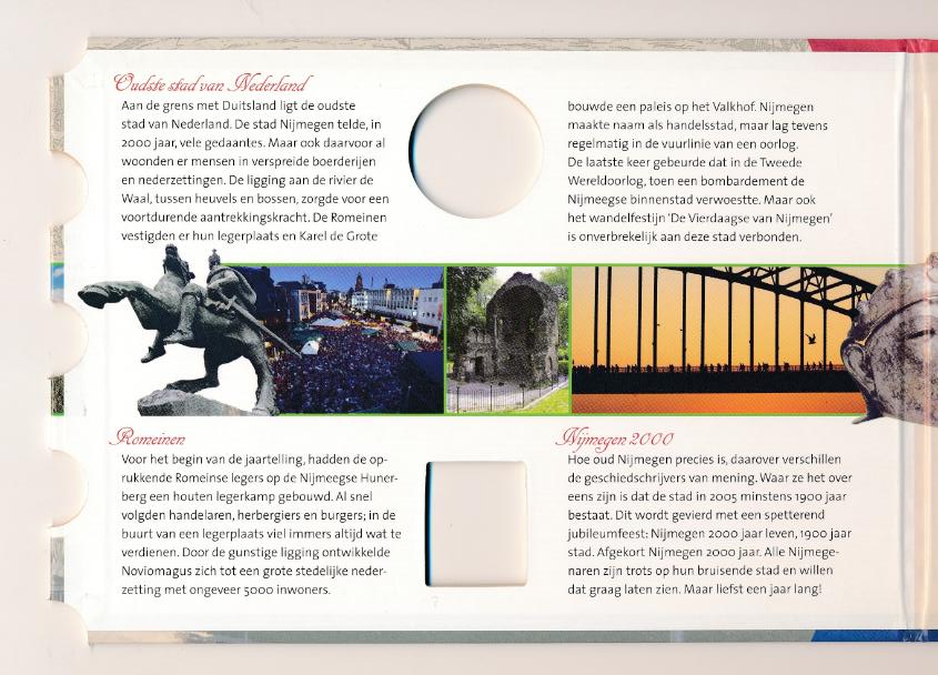 Nederland TPG mapje Mooi Nederland Nijmegen 2005. Dit mapje bevat 5 postzegels van 44 cent en een penning van Nijmegen.