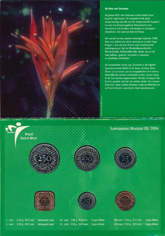 Suriname BU Jaarset 2004. Deze set bevat de 1 cent t/m de 250 cent. Более подробную информацию смотрите на сканах. Если у вас возникли вопросы, не стесняйтесь отправить нам сообщение.
