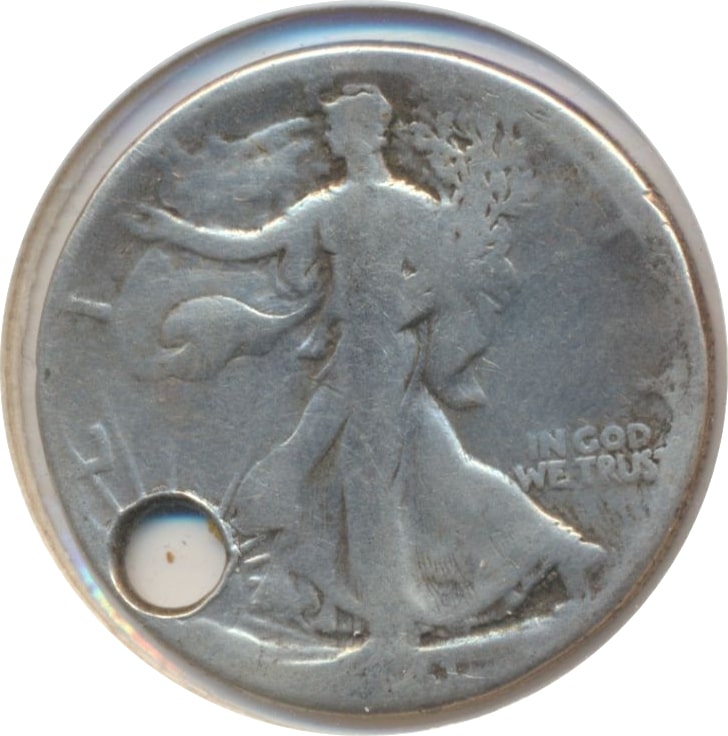 USA half dollar zilver love token. Half dollar 1941 uit Amerika. Met gaatje in de munt. Op de achterzijde zijn de tekens gegraveerd “Geloof,hoop en liefde”.