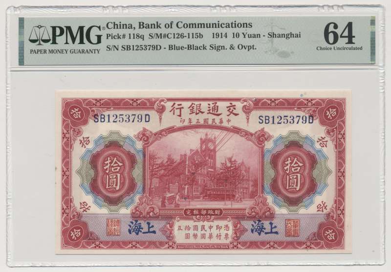 China 10 Yuan 1914 PMG64Pick:118qChina, Bank of communications – Shanghai