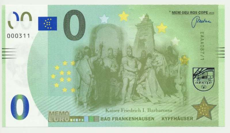 Duitsland 0 Euro biljet Bad Frankenhausen kyffhauser (1e druk) Bad Frankenhausen kyffhauser, kaiser Friedrich I. Barbarossa 详情请查看扫描件。 如有问题,请随时给我们留言。