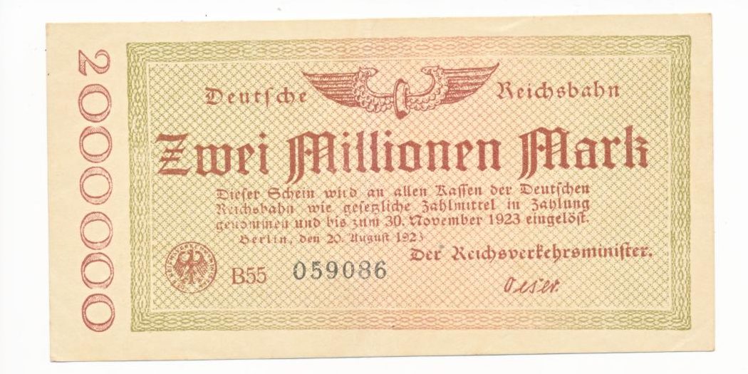 Duitsland 2 miljoen Mark 1923 B55 bon Deutsche Reichsbahn 详情请查看扫描件。 如有问题,请随时给我们留言。