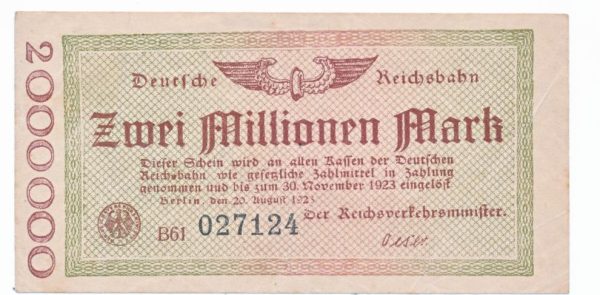 Duitsland 2 miljoen Mark 1923 B61 bon Deutsche Reichsbahn 详情请查看扫描件。 如有问题,请随时给我们留言。