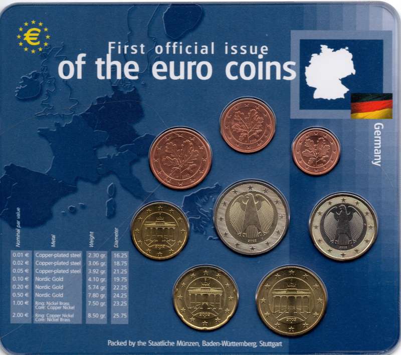 Eerste uitgave van de euro. Sets zijn uitgekomen in 2002. Sets kunnen diverse jaren bevatten.