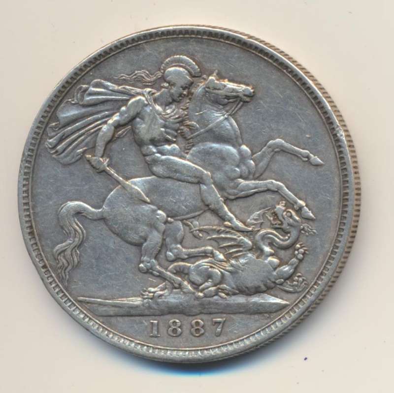 De bekende crown heeft op de voorzijde een voorstelling van Sint George en de draak, en op de keerzijde het portret van de regerende vorst. Dit model is ingevoerd onder het bewind van koning George III, daarvoor bestond de voorkant uit een patroon van wapenschilden met een kroon erboven. Dit model is onder de volgende Vorst(inn)en uitgegeven: