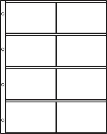 Onze Systeembladen worden vervaardigd uit glasheldere weekmakervrije folie, welke volkomen veilig is voor al uw verzamelobjecten, zoals bankbiljetten, ansichtkaarten, postzegels, aandelen, posters, flyers, folder, spelkaarten, etc.