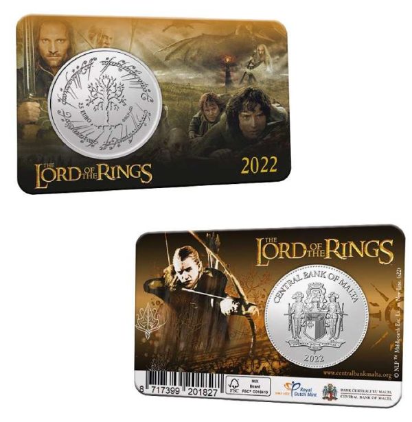 De Malta 2 ½ euro 2022 ‘The Lord of the Rings’ in coincard draait volledig om The Lord of the Rings, een van de meest succesvolle franchises ooit, gebaseerd op de boeken van J.R.R. Tolkien. Deze boeken draaien om de hobbit Frodo Baggins, die een bijzondere ring in zijn bezit krijgt. Dit is het instrument van de Duistere Heerser Sauron, die er alles aan doet om de ring te pakken te krijgen. Zo wordt Frodo Baggins met zijn vrienden op een ongekend avontuur gestuurd door Midden-Aarde.