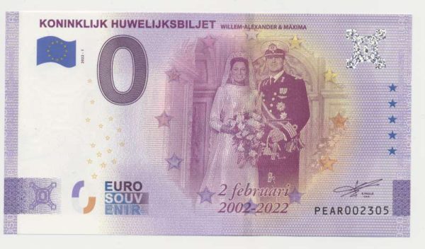 Nederland 0 Euro Koninklijk huwelijksbiljet 2022 Willem Alexander & Maxima 2 februari 2002-2022