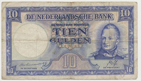 Het biljet werd begin jaren 50 uit omloop gehaald toen het tien gulden biljet van Hugo de Groot in omloop kwam in 1953.