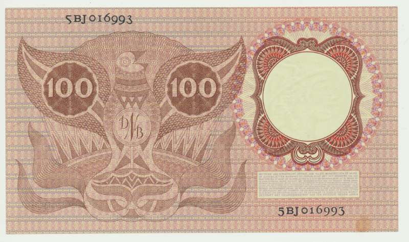In het begin van de jaren 50 werd er een aaneen lopende serie van bankbiljetten geïntroduceerd. Dit was de eerste officiële erflater serie, die door Eppo Doeve is ontworpen. Het 100 gulden biljet heeft aan de voorzijde de afbeelding van de filosoof Erasmus, die bekend is om zijn werken zoals ‘Lof der Zotheid’. Ook staan er op de voorzijde enkele symbolen zoals de inktpot, de zandloper en de ganzenveer. Deze symbolen staan voor de geest van Erasmus. Op de keerzijde is een vogel te zien, die oprijst (dit symboliseert het herrijzen van Nederland na de tweede wereldoorlog). De handtekeningen op het biljet zijn van DNB-President Holtrop en DNB-Secretaris de Jong, en naast de 100 gulden Erasmus zijn er ook nog de volgende biljetten bij de serie: