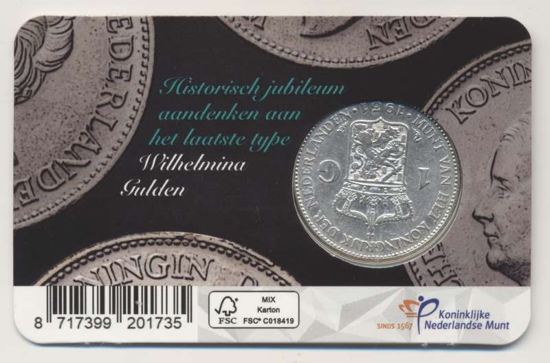 Nederland 100 jaar laatste type Wilhelmina-gulden 1931 in coincard