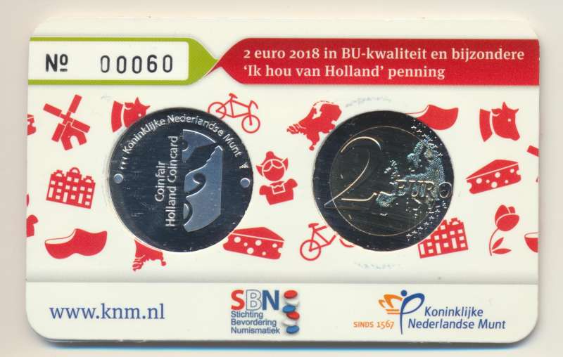 Nederland 2 Euro 2018 Ik hou van Holland tulpen in coincard met zilveren penning 由 KNM(荷兰皇家造币厂)发行 Bevat de 2 euro 2018 met Willem Alexander en zilveren penning in BU-kwaliteit. Coinfair 2018. Oplage slechts 100 stuks.