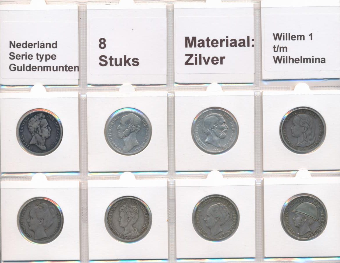 Nederland serie zilveren guldenmunten Willem 1 t/m Wilhelmina (8 stuks)