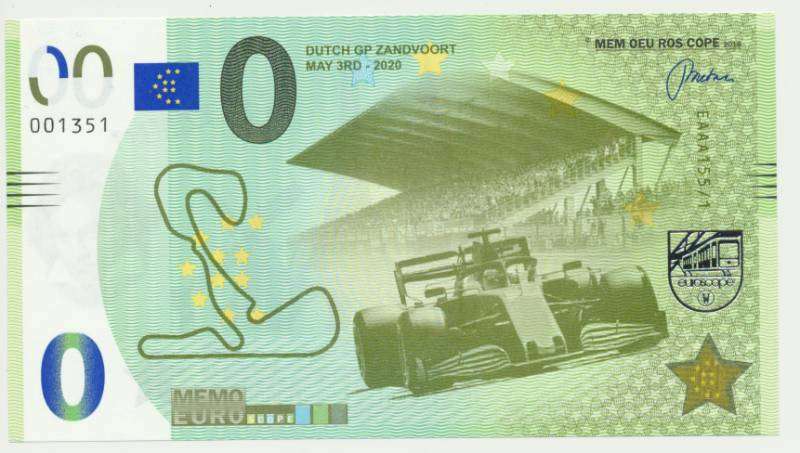 Op de voorzijde is het circuit van diverse landen te zien inclusief een racewagen. 背面是我们熟悉的标准 0 欧元设计。